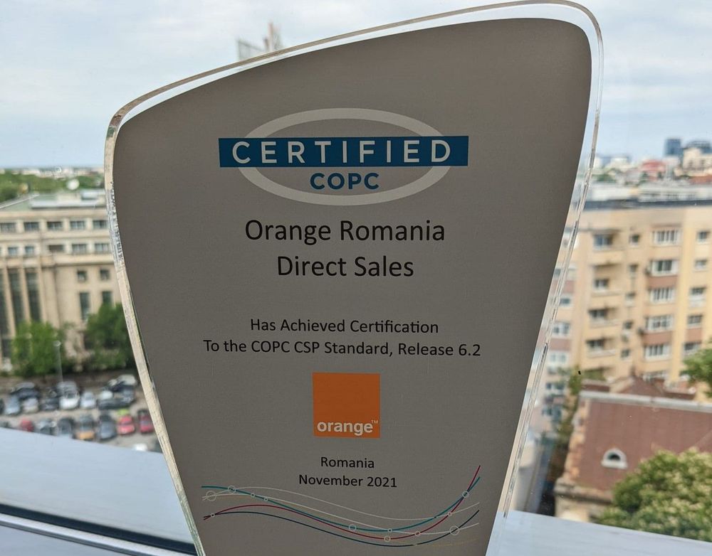 În egală măsură, la nivel de business, certificarea COPC reasigură toti stakeholderii că în Orange România oferim în mod constant excelență operațională și cel mai înalt nivel de servicii furnizate clienților noștri, îmbunătățind astfel, în mod continuu, procesele de lucru, ariile de leadership, eficiența și performanța.”