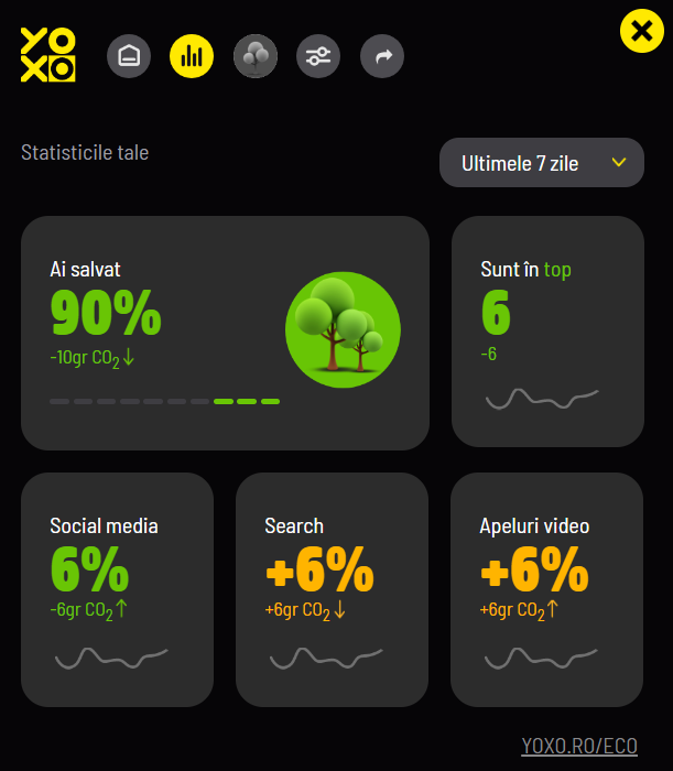 Mai multe recomandări despre cum poți reduce amprenta de CO2 din medul online sunt disponibile aici: yoxo.ro/eco/
