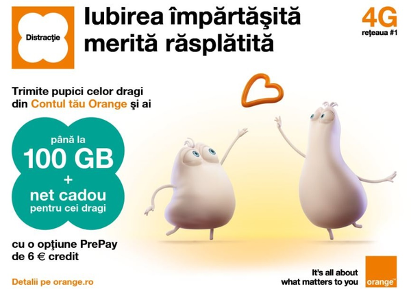 Cu noua ofertă Orange, clienţii PrePay se pot bucura de internet bonus pentru ei şi persoanele dragi prin campania „Iubirea împărtăşită merită răsplătită”, desfăşurată în perioada 1 februarie – 14 martie. Cei care intră